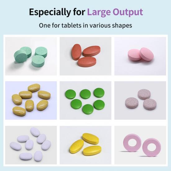 Das hydraulische Druckstabilisierungssystem stabilisiert das Gewicht der von dieser Tablettenpresse produzierten Tabletten, da die Standard-Druck-Hydraulikstabilisierungsvorrichtung und die SPS automatisch reagieren, der Hydraulikdruck stabil bleibt, die Stabilität des Tablettenpressens verbessert wird und die Geräuschentwicklung gering ist.